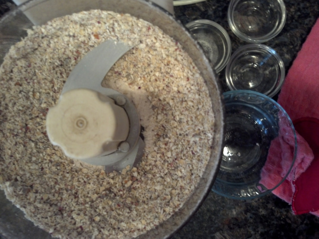 - Blend the ingredients until you have achieved a fine, grainy powder.